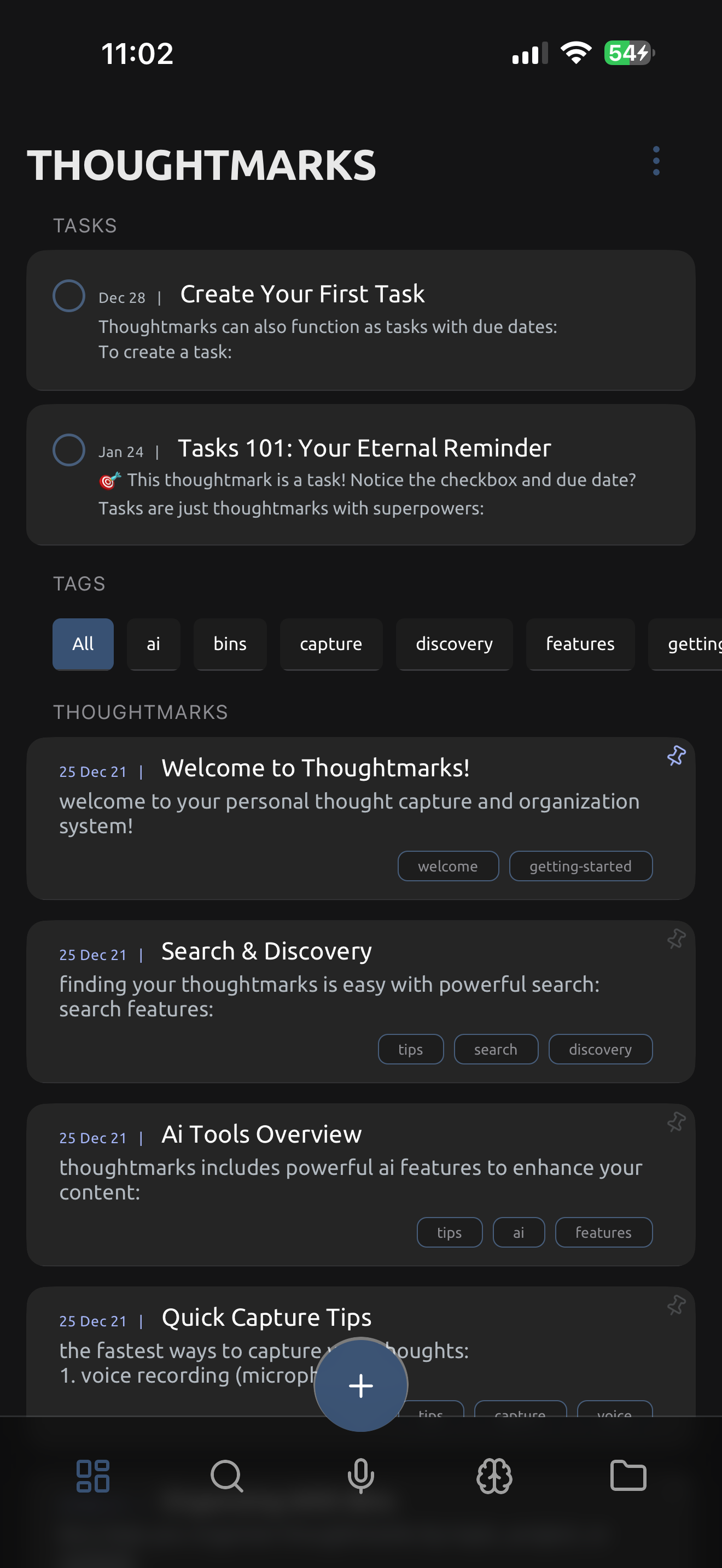 Thoughtmarks uses AI to automatically tag, categorize, and link your notes based on meaning and context. It finds connections you might miss and suggests related content to explore. No manual filing required.